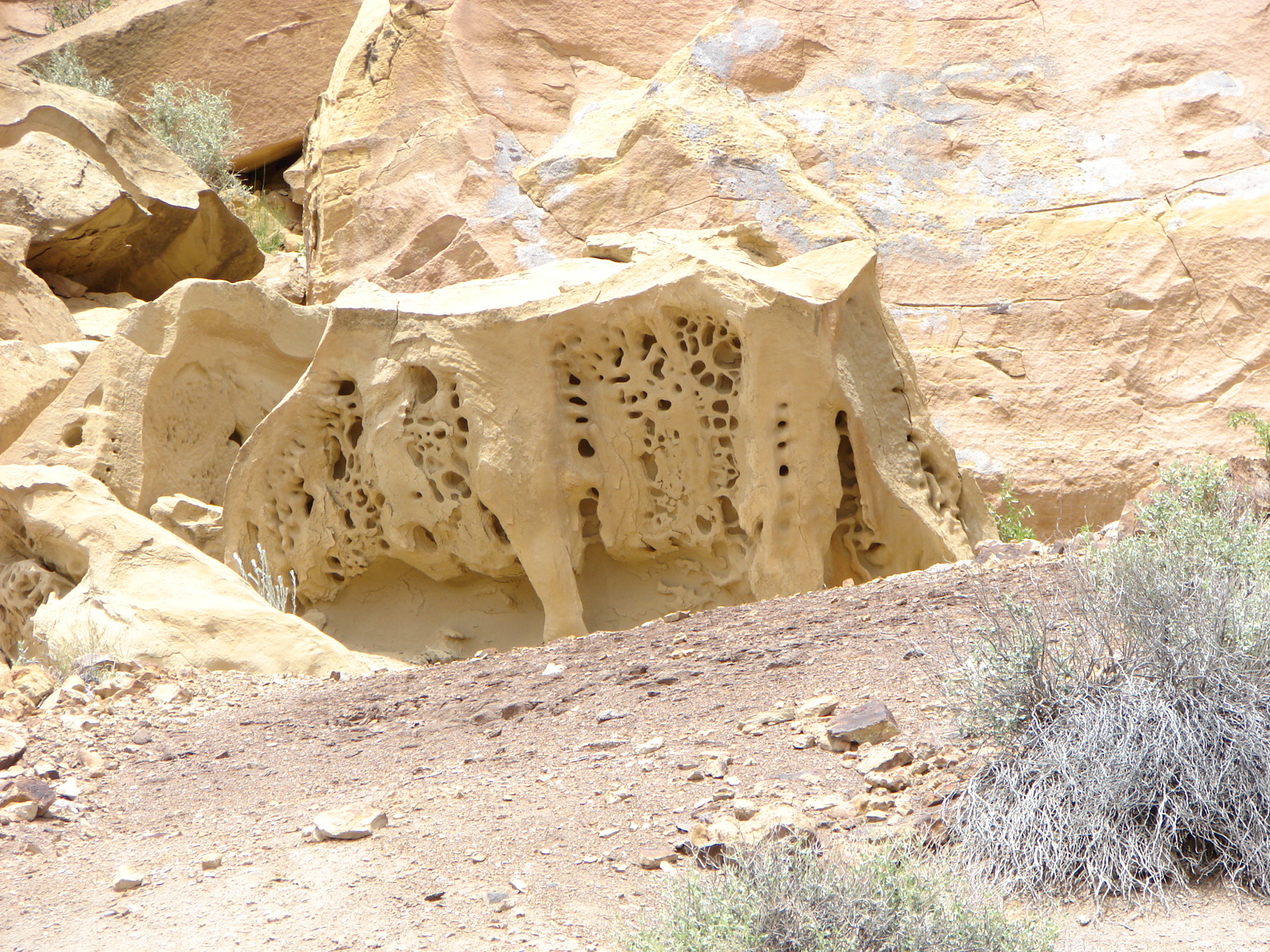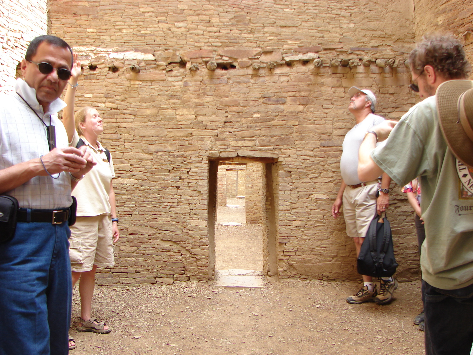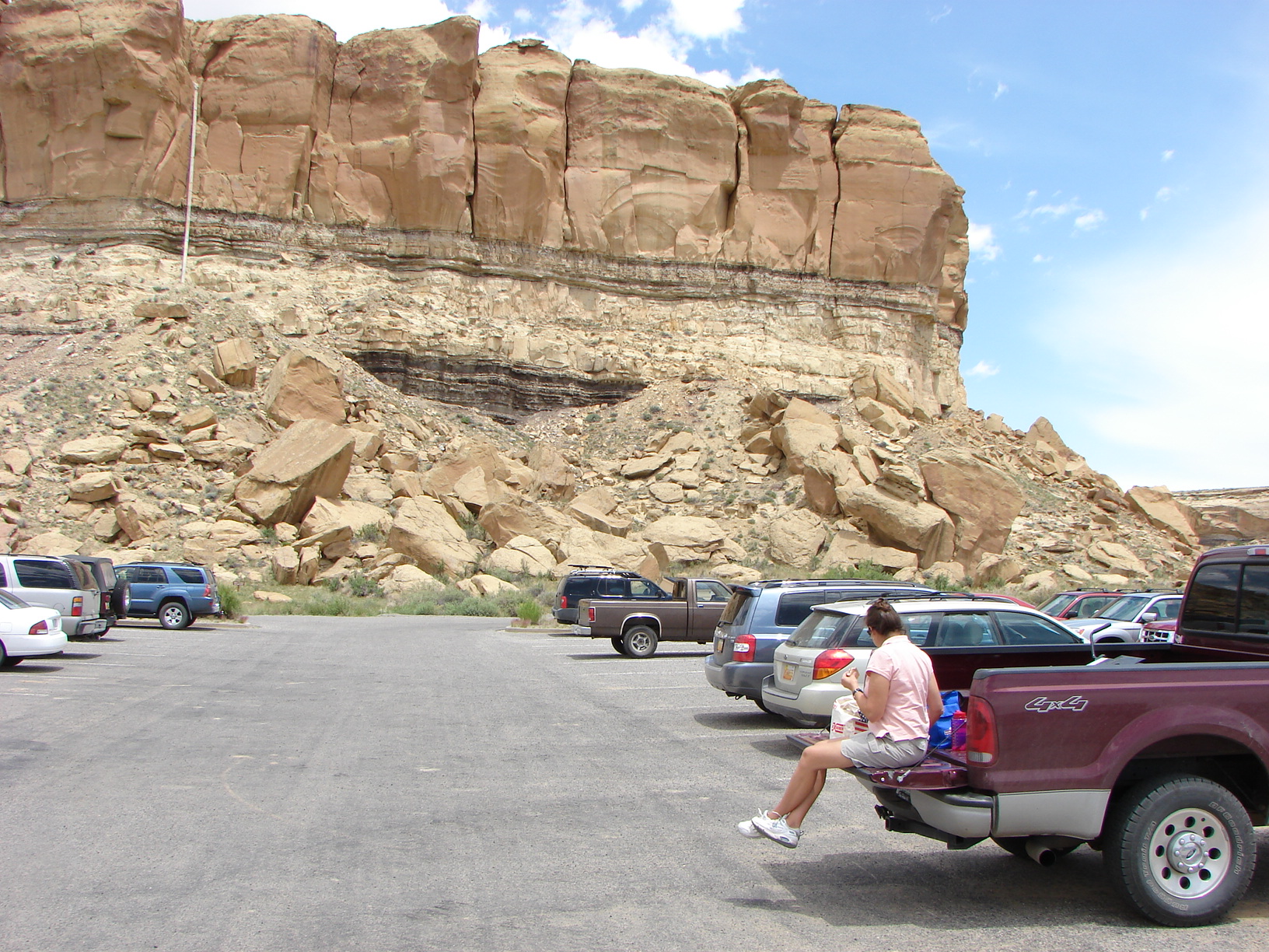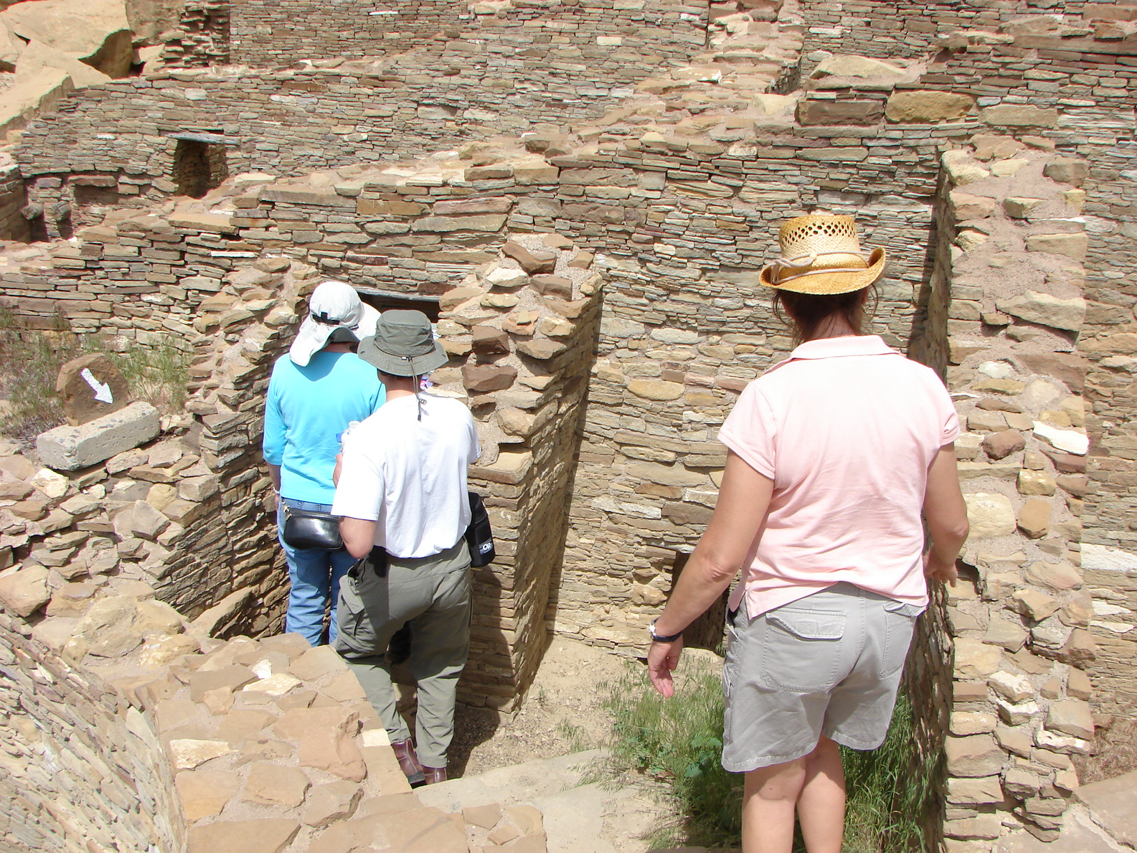 Yesterday we camped at the Desert Rose in Bloomfield, NM. We went into Farmington where they were having their annual Riverfest. It was a large park on the Animas river and we got plenty of hiking. The food and entertainment were great as well. Today we went to Chaco Canyon. It was a very interesting day. They don't get many visitors because it is out of the way and the last 16 miles is a very bumpy dirt road. If you're there when it rains, they won't let you out because the road crosses the stream bed and there are no bridges. We had to drive around a snake on the road on the way in.