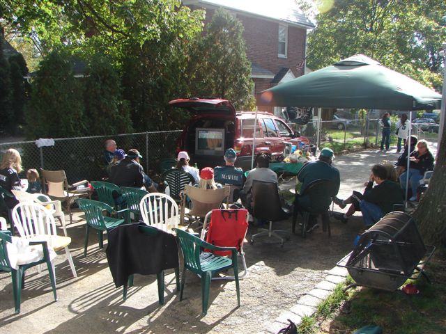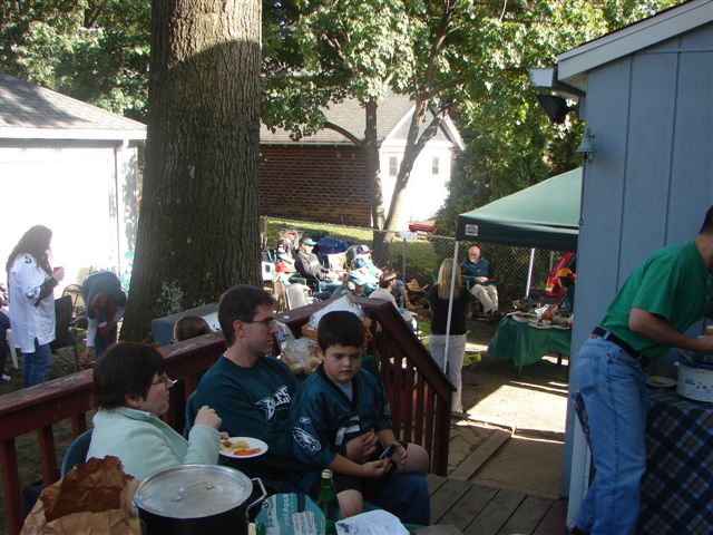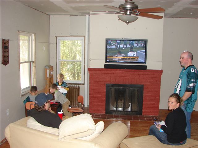 Last week we helped get ready for Mike's annual tailgate party. Finished dry-walling the living room while he finished the wiring. Alesa helped Lisa work on landscaping and painted the powder room Eagles green. We took the girls Friday night and then the party on Sunday. The eagles won!