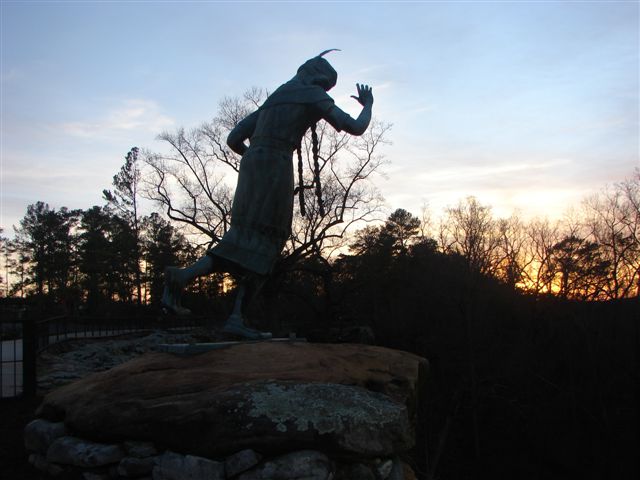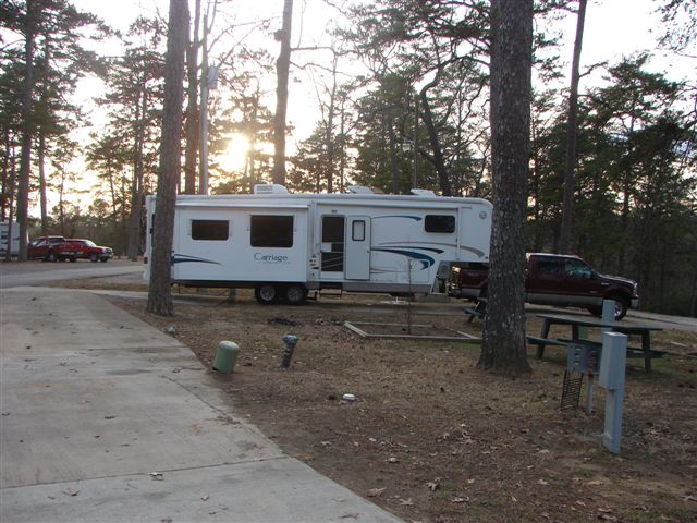 We left home just before noon yesterday and stopped about 7PM for dinner and fuel at a Flying J at Exit 77 on I-81 in Virginia. We ended up spending the night in the parking lot amidst other RV's. We did get a comfortable night's sleep but had to scrape the windshield in the morning. We are now in Gadsden, Alabama just off I-59 in the Noccalula Falls campground. We arrived early and walked throught the state park and de-winterized the trailer. It is 71 degrees here and 65 degrees back home. We will continue our trip to Beaumont late tomorrow morning and should have no problem getting there by Wednesday.
