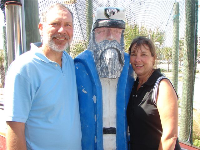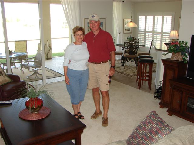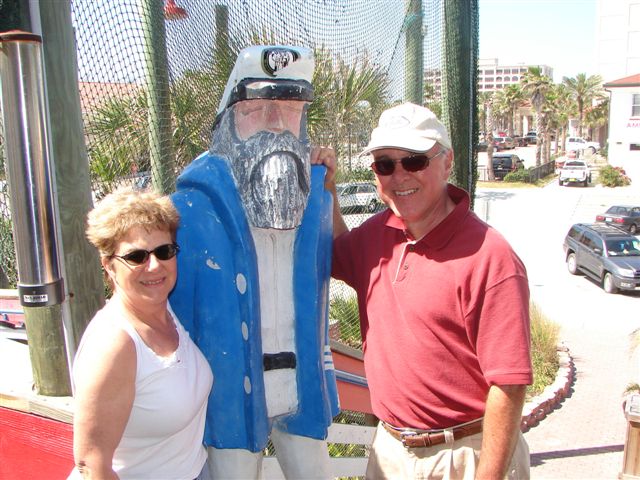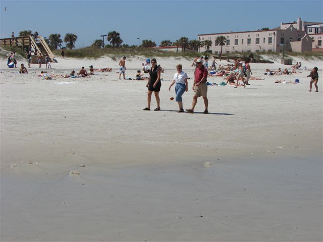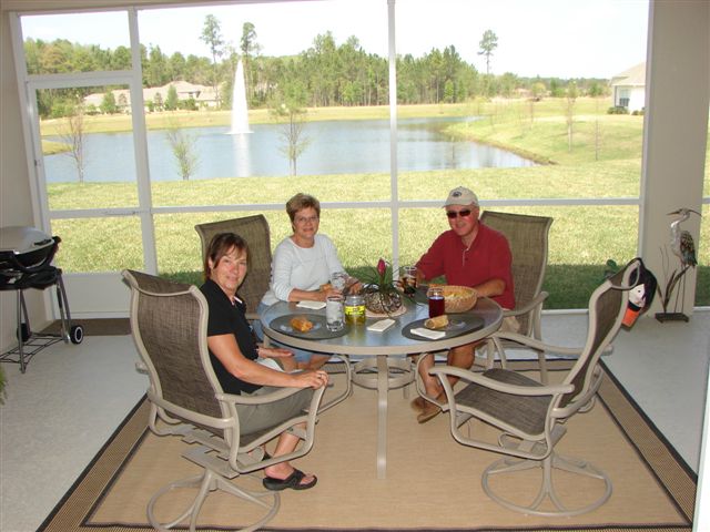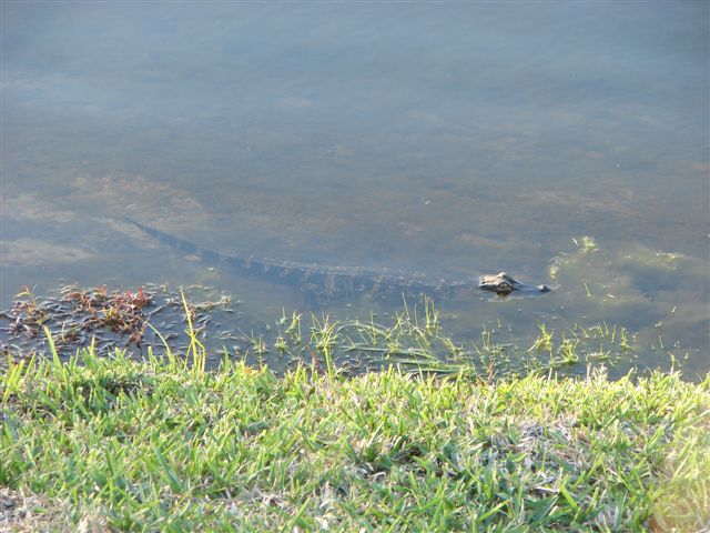 Today we had a very enjoyable day visiting with Jeff & Sharon Pruner. They stopped over to tour the trailer and RV park and then we went to their new home in southeast Jacksonville. After lunch we went to the beach for a long walk and a few drinks. We then went back to enjoy the pools and hot tub at their activities center. After dinner, during which we were visited by a small gator in the pond behind their house, we returned to our trailer. We had a gret day visiting with Jeff & Sharon and their beautiful new home and community. They will be very happy settled there.