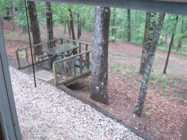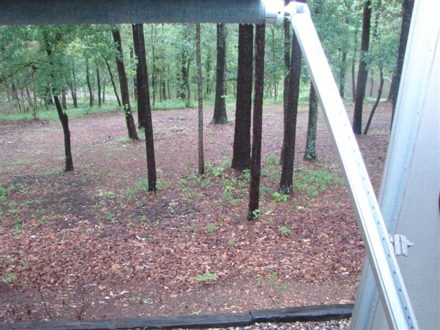 We traveled on 90 - 271 - 71 and stopped north of Cincinnati at dinnertime to rest and miss the rush hour traffic. One of the tires on the RV looked low and I checked the pressure and it was about half of what it should have been. We went to the next exit and filled the tire but saw the head of a roofing nail sticking from the tire. We called our roadside assistance and they were extremely helpful and empathetic but said it would be 2 hours before someone could remove the tire and it couldn't be fixed until the next morning. Even though we have the time, I still am working on the 'patience' thing. I told him I would be happy to drive the unit somewhere. It turned out we only had to drive back one exit (5 miles) and back the unit into their garage. It took them less than 10 minutes to jack up the RV, remove the tire, patch the tire, put the tire back on and lower the RV and we were on our way. We picked up 65 in Louisville and slept for 4 hours in a roadside rest in Southern Kentucky. We got to Nashville before the morning rush and took 40 through Memphis to Little Rock. We called ahead and reserved a spot at the Arkadelphia RV park and arrived there at about 3 in the afternoon. We picked up an hour as we are now in Central time. The two day drives are grueling and we do not expect to do them very often. We are now settled and rested in Arkadelphia at a very nice wooded campsite. Tracy called to say that Uncle Jim had passed away that morning.
