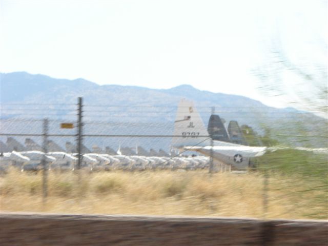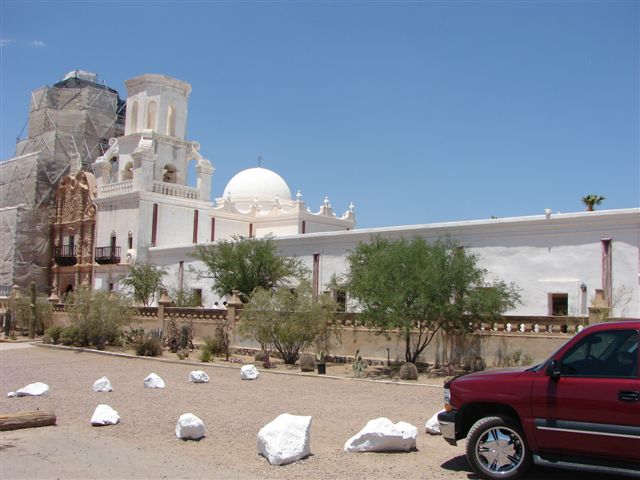 Today we went to an old (1636) mission out in the desert south of Tucson. As is our way, we took a roundabout way to see more sights, both expected and unexpected. We drove by Davis-Monthan Air Force Base and discovered that it is where the government puts all of its old, unused planes which is called the "boneyard". I appreciate Alesa taking time out of her mother's day to let me drive around the perimeter. We made it to the mission in time to attend 11:00 mass and afterwards we toured the mission and its grounds. We then took another roundabout drive to northern Tucson to go to Sam's club. We passed a "der Weinerschnitzel' and had to eat lunch because we used to eat there often when we lived in El Paso. From Sam's we drove canyon roads before heading back to the resort. We went to the pool for exercise and then cooked steaks, salmon and chicken on the grill for dinner. I then washed the truck and the trailer for first time while Alesa watched TV and missed her 'babies' on Mother's day.