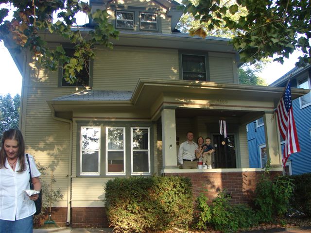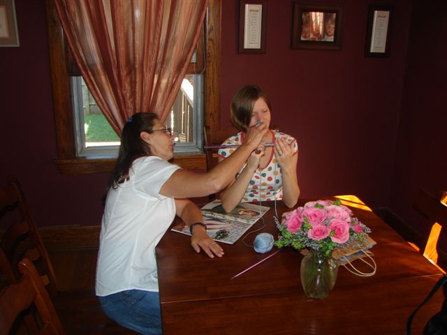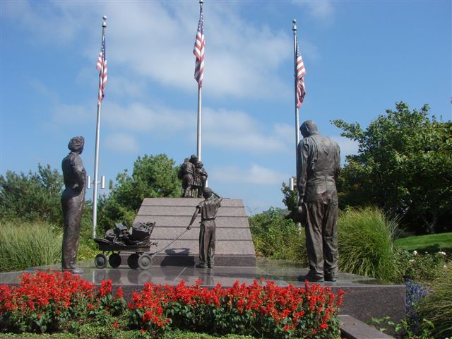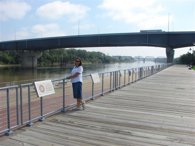 Today I finally bought some new sneakers at the outlet mall next to camp. The old ones were very tattered and had a lot of hard miles on then but size 14's are hard to find. We then toured Omaha, mainly the Missouri river and the Old Market. Then back to the Wingebachs for more visiting and dinner at "Oh Sole Mio". Even got some exercise today by taking Jack (the dog) for a walk up to the Leslie King, Jr. birth site and then back through Hanscom Park while Alesa was teaching Becca how to knit. BTW-Leslie King, Jr. was Gerald R. Ford's name until he was adopted by his stepfather.