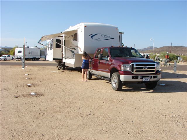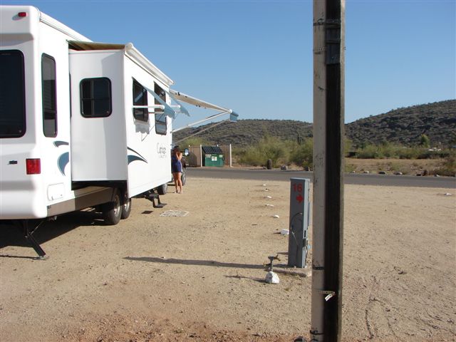 This morning we headed toward Phoenix. I wanted to spend some time visiting there but I-10 and I-17 snaked through most of the town so we saw what we wanted. We stopped at the Pioneer RV park just north of Phoenix and could have come back but did not want to deal with the traffic. As a matter of fact we did not even unhook the trailer. I was carded at the park. I had to prove I was over 55 before they would let me stay. Alesa is hooked on billiards, the last two parks had a number of large pool tables and she has spend a lot of time in the pool halls. A good pasttime while the laundry is running. We then exercised in the pool and then relaxed in the hot tub. It's still over 100 degrees outside so we spent the evening in the A/C watching TV.