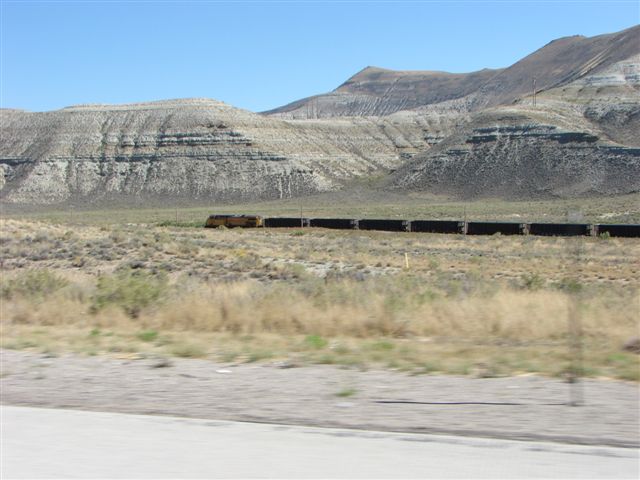 We drove through the rolling expanse of Wyoming with the Colorado mountains off in the distance. We drove through canyons and badlands. We are now at the Rock Springs KOA. Spoke to Kate today and will call her when we get into Steamboat Springs tomorrow. She should have some time tomorrow evening and most of Wednesday to visit.