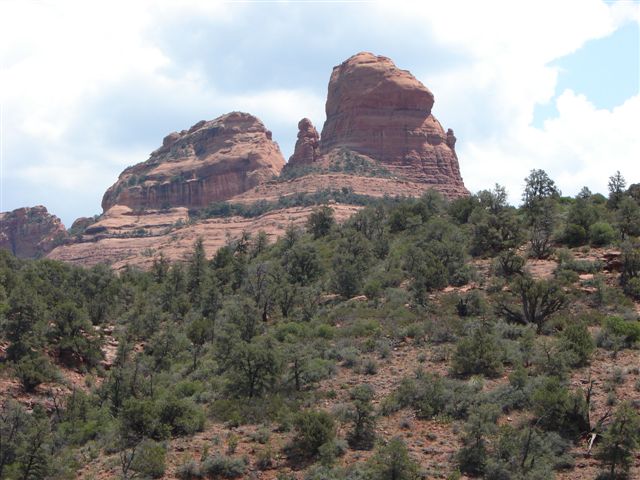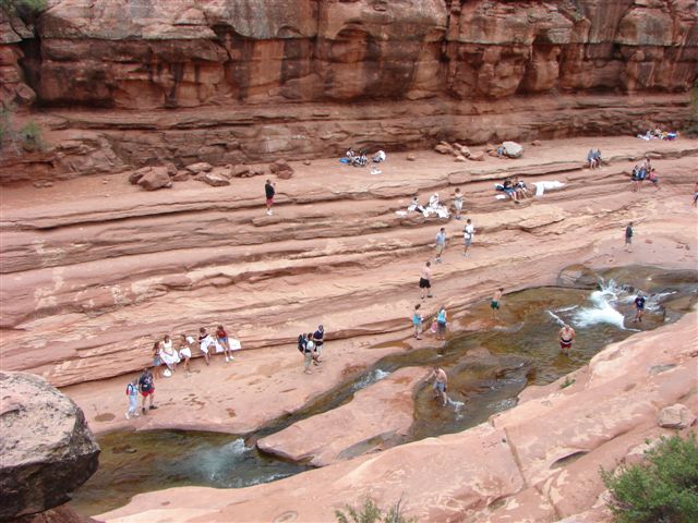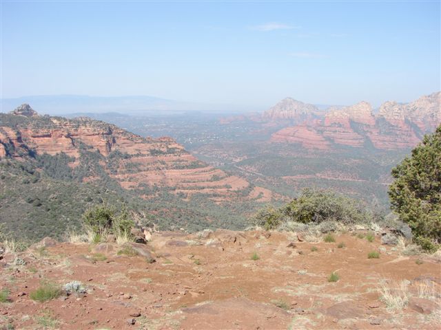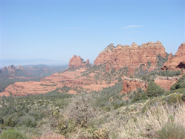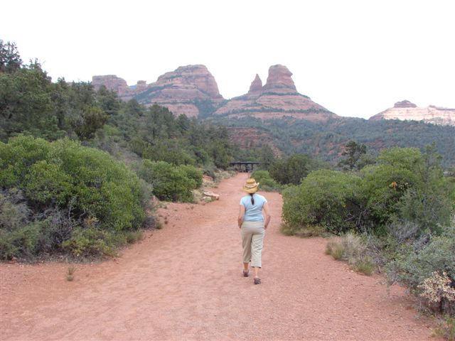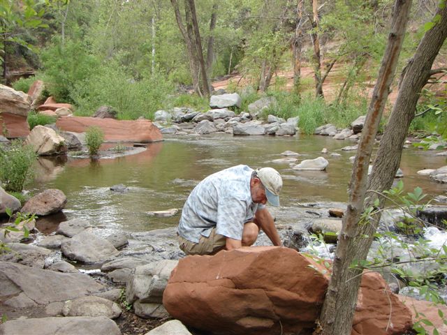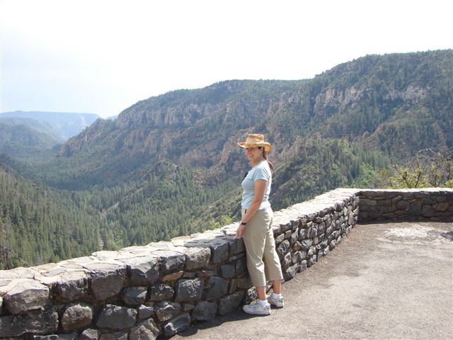 Today we took a back road to Sedona. It was the best way to get our first view of the town. We wound down from the high mountain forest on precipitous roads through red canyons with beautiful views of the town and the surrounding countryside. It has got to be one of, if not the most beautiful area in the US. We took a lot of pictures but were disappointed as they do not come close to accurately showing the red of the rock nor the scale of the views. The road in was a dirt forest road and was very, very bumpy and we saw no other traffic until we got close to town and then there were only tour Jeeps and Hummers bringing tourists up to see the views. We walked the uptown and then drove to some of the better viewing points. We then drove along Oak Creek on the way back to Flagstaff. We stopped many times along the way. One for A to buy some jewelry and to talk to the Navajo woman about the area, the Novajo people, her life story and Tony Hillerman books. It all sounded like blah - blah - blah to me but it did allow her to accomplish two of her goals and now mama is happy. Another stop was at 'Sliding Rock State Park', which turned out to be a long channel in the rocks with the creek running through where people were swimming and sliding down the rock. Tomorrow we will move the trailer just north of Flagstaff and get caught up with whatever we have to get caught up with. Saturday we will get up early for a day trip to the Grand Canyon. I don't think we will have internet access for a few days.