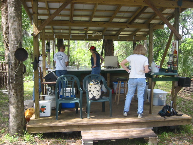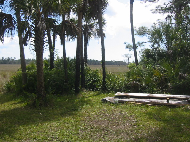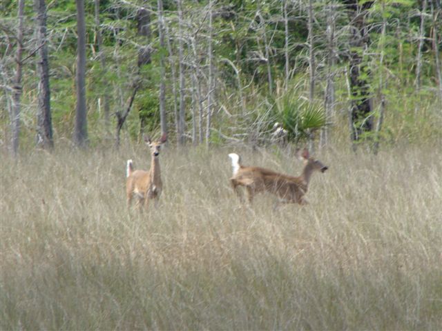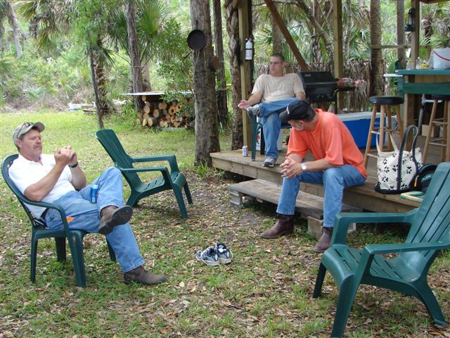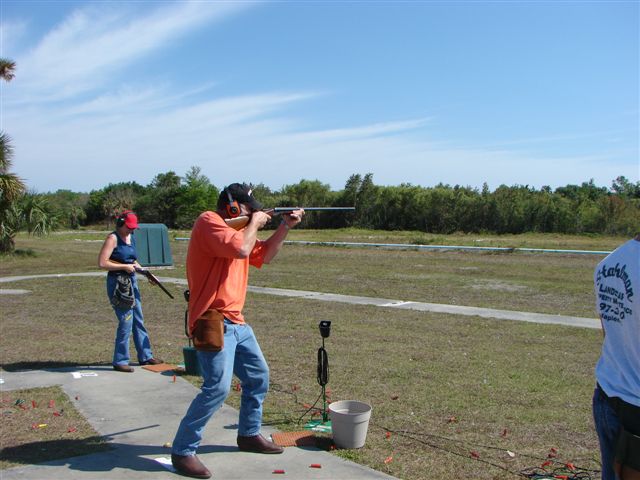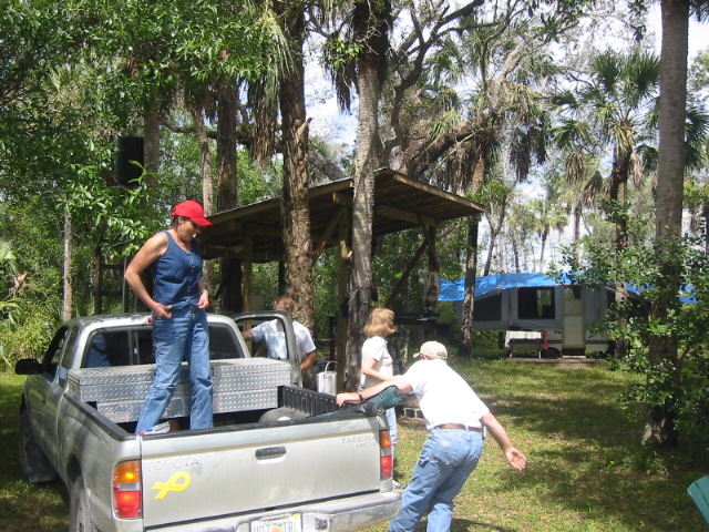 Today we traveled southeast of Naples and saw some of the real Florida. We traveled with Janet & Craig and Ray Carroll and his son, Robbie. Ray grew up in Naples and loves to show off his Florida and we love it. We went skeet & trap shooting in the morning and the girls did great. It was their first time and now they are hooked. We then went farther southeast to Ray's camp in the everglades. After about 35 miles on highway, then 3 miles on a dirt road, then 2.5 miles on a two track trail barely sqeezing between the bushes and drainage canals, we rode over about 1.5 miles of prairie (grasslands). The ride over the grassland felt like being on safari on the grasslands of Africa. We saw deer, hawks, lubbers (crickets) gators and no snowbirds except Alesa & I. It is the dry season and water is limited to gator holes and drainage canals. During the wet season the grasslands are covered with a few inches of water and only the higher (by inches) land, usually with trees, is above the water.