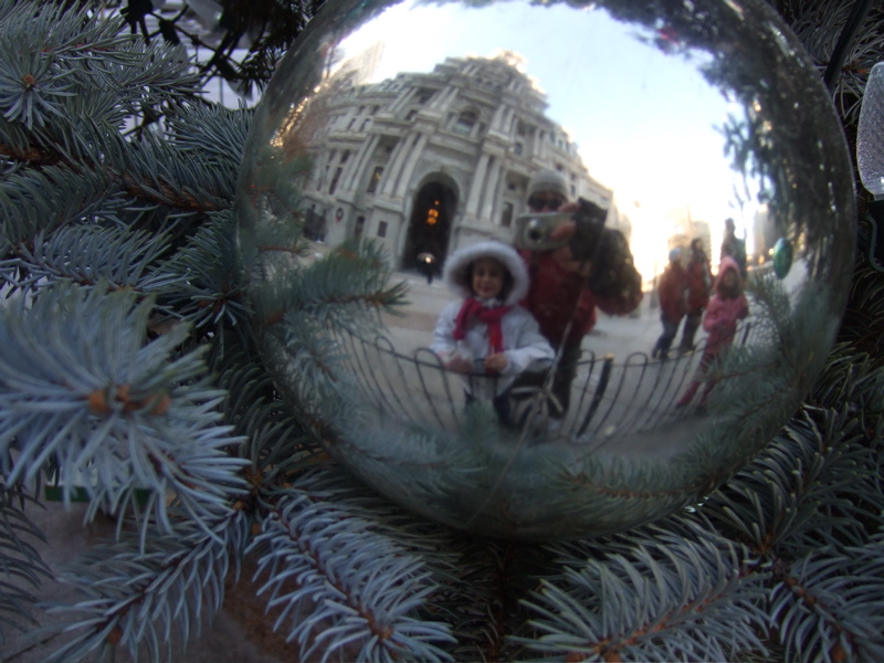 Mike got a Philadelphia walking tour book and the girls had a half day of school so we met him and his family downtown for a brisk walk. We had snow that morning and we took the train from Malvern to the Market East station downtown. We walked around city hall and down Broad Street and read abo