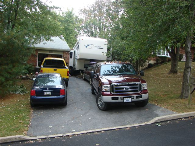 Jeff helped me back the trailer in on the side of the house last night. That puts the door on the house side, allows us to put the sides out for unloading and frees the truck. We are enjoying Jeff and family and will be heading to Mike's today and tomorrow to help oround the house and putting u
