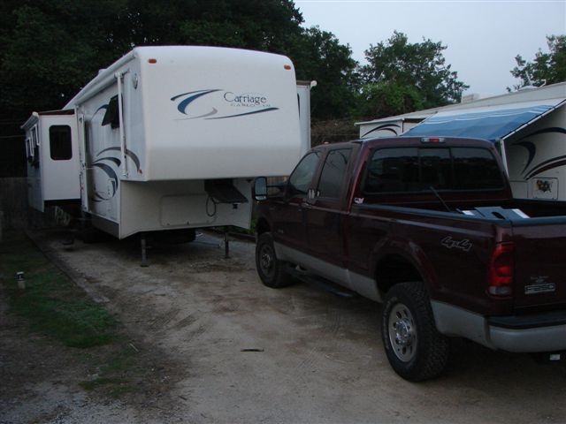 We left at about 10 this morning and arrived in Denton at about 3:30. The trip went well and we took Texas back roads for the last 70 miles. They were fine until we hit mall construction in Denton. We set up at the Post Oak RV park, ate dinner and then went to see my dad. We are making an ear